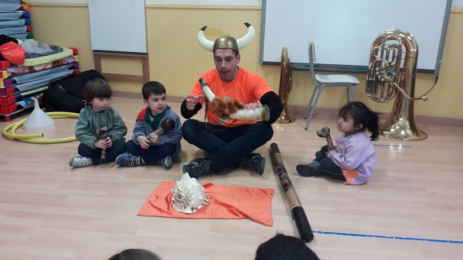 Aquest mes hem fet una activitat molt divertida de música: ja que vam poder veure una tuba de veritat. El Toni que és el noi que fa fer el taller va portar una tuba gran i una petita.